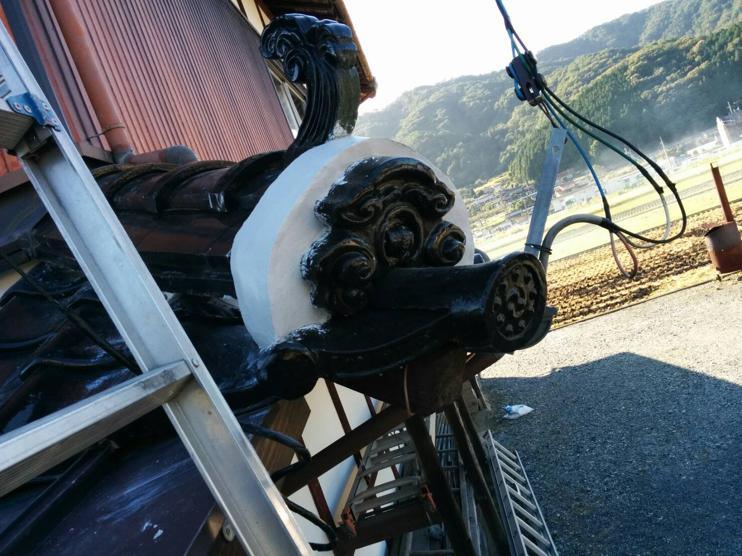 写真は鬼瓦の漆喰(鬼漆喰)。
